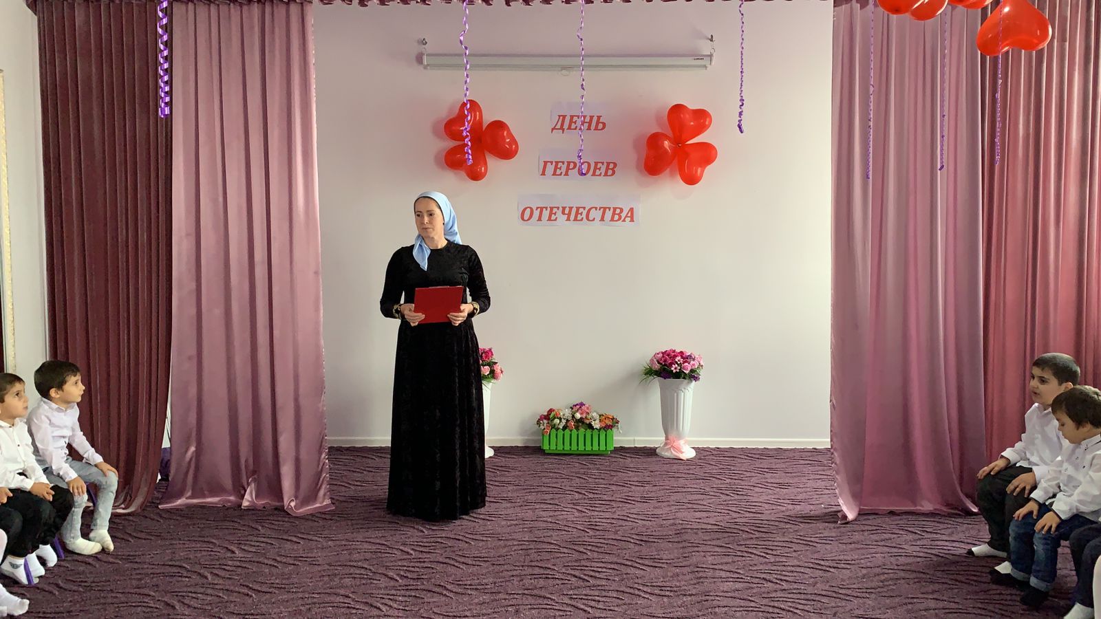 09.12.20219 ДЕКАБРЬ-ДЕНЬ ГЕРОЕВ ОТЕЧЕСТВА С 6 по 9.12.2021 г. в нашем саду был разработан и проведен план мероприятий ко «Дню Героев Отечества». В этот день воспитатели всех возрастных групп провели следующие мероприятия: во всех возрастных группах проведены тематические беседы, посвященные к данной тематике на тему «Награды России» и «Героями не рождаются». 9 декабря с детьми средней и старшей групп был проведен утренник, посвященный дню Героев Отечества. И в завершении недели проведена выставка детских рисунков на тему «Военная техника», в котором участвовали дети старших групп.