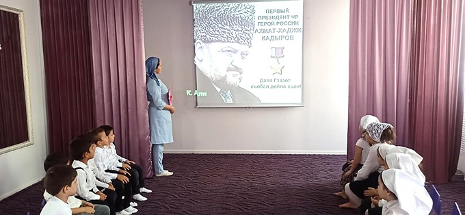 Ребята, мы всегда должны помнить о подвиге А-Х Кадырова! За то, что сегодня над нами мирное небо, за мир и стабильность, за то, мы сегодня можем спокойно сидеть в этом классе, за нас, за свой народ - вот за что и за кого отдал свою жизнь А-Х Кадыров. Великий сын своего народа! Он навсегда останется в наших сердцах!